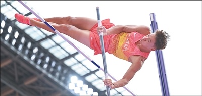 中国队选手费翔在2025年世界田径锦标赛男子十项全能的撑竿跳高比赛中。新华社记者 宋彦桦摄